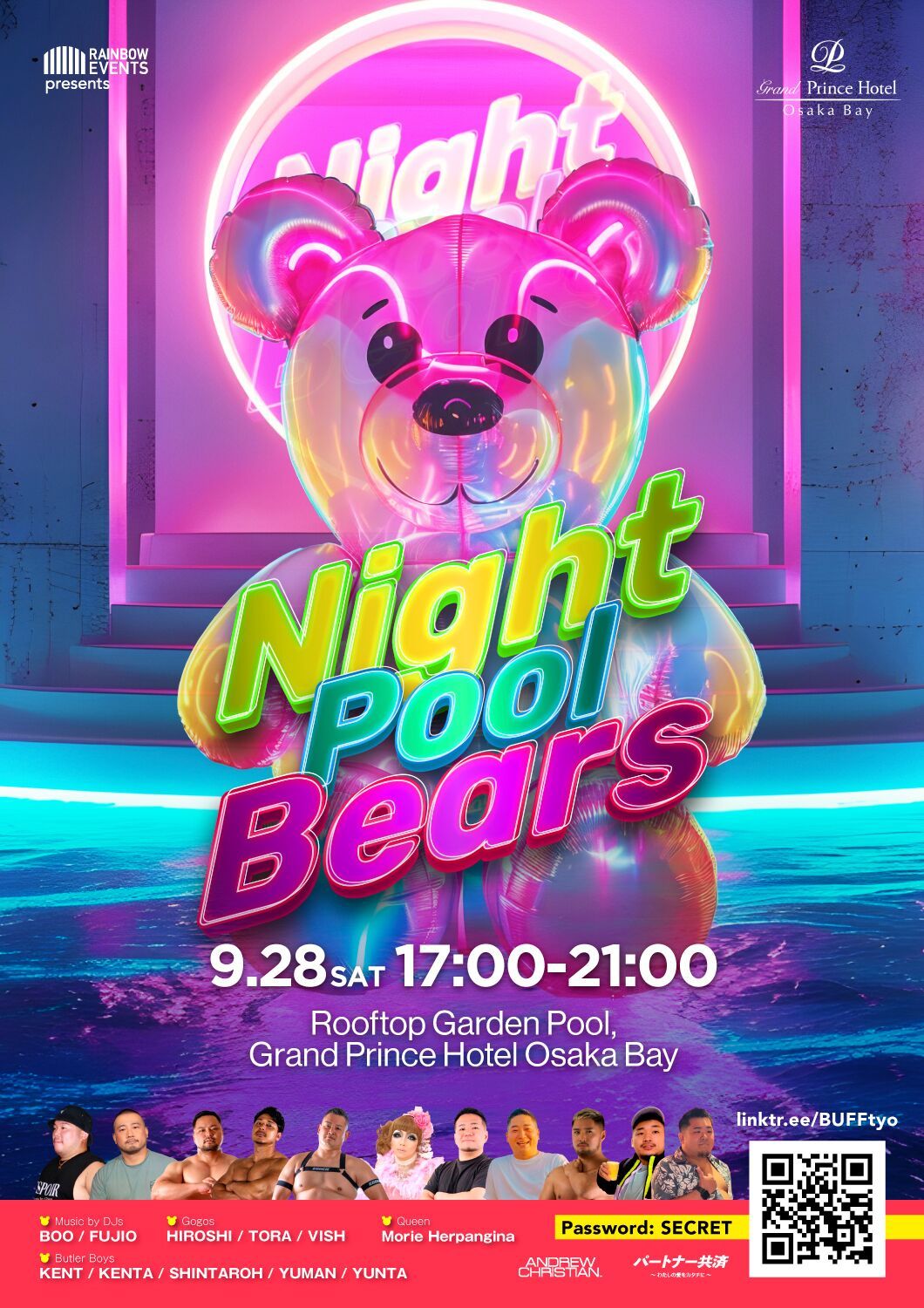 If you were not able to enjoy the night pool in June because you had to leave after the rain at the Osaka Bear Pool, please come and join us!